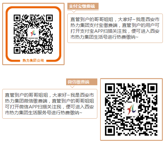 直管到户的用户可通过微信、支付宝搜索“西安市热力集团网上营业厅”→点击“在线缴费”→按提示完成交费。